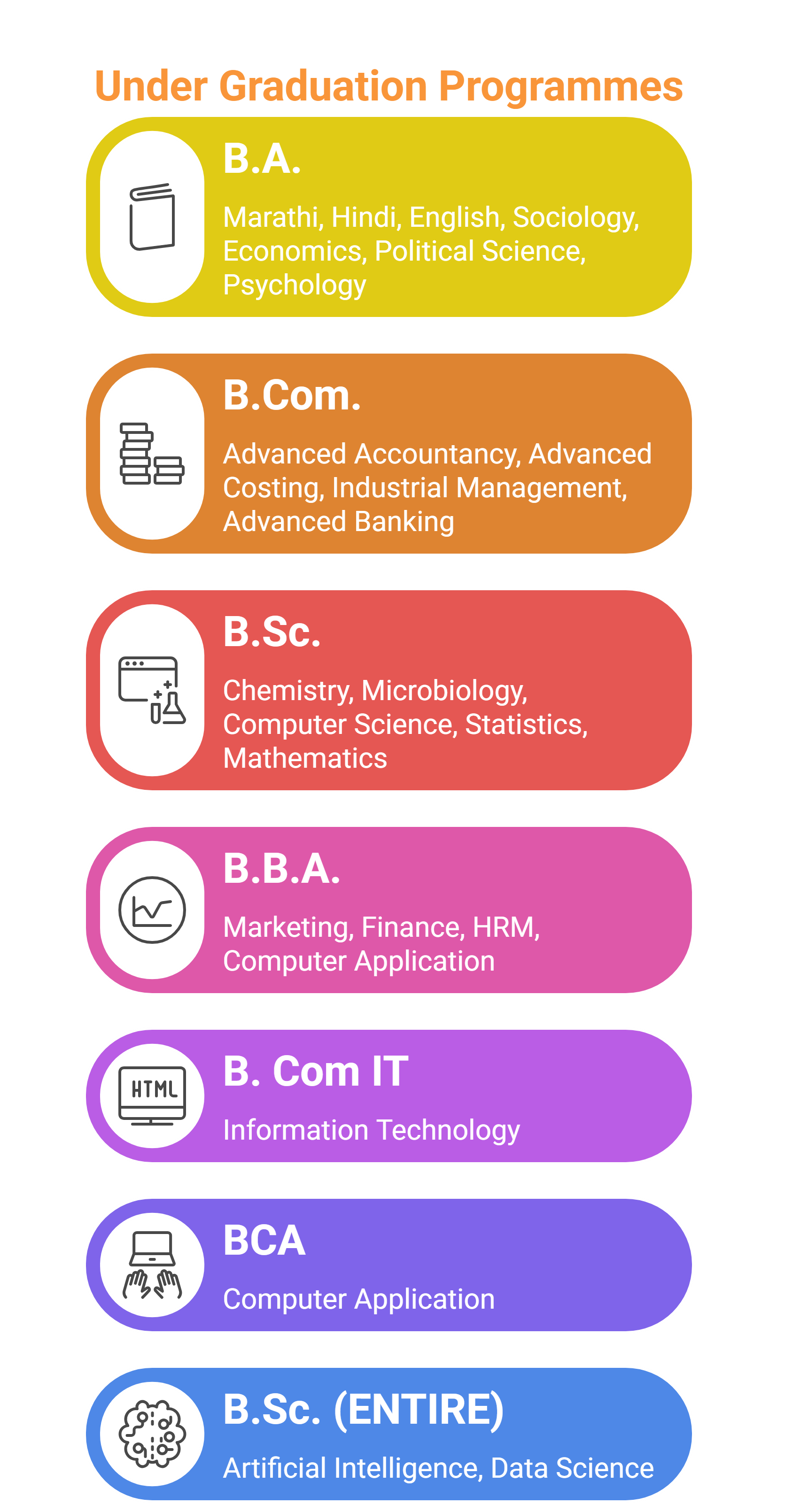 | B.A. | Marathi, Hindi, English, Sociology, Economics, Political Science, Psychology |